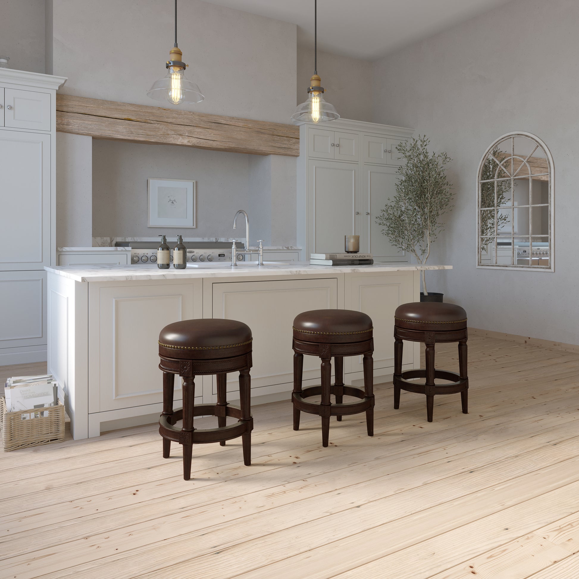 The Backless Charlotte Barstool in Distressed Walnut is a best-selling swivel stool that effortlessly embodies a stunning classic high-end bar look. With its impeccable design and luxurious appeal, this barstool offers both style and functionality for your home.